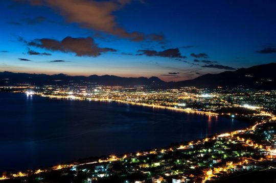 Kalamata is a city in southwestern Peloponnese, the capital of the Messinia Prefecture and a port in southern mainland Greece. The city has a population of 57,706. It is built at the foot of Mount Kalathi (the edge of Mount Taygetos), in the heart of the Messinian Gulf.